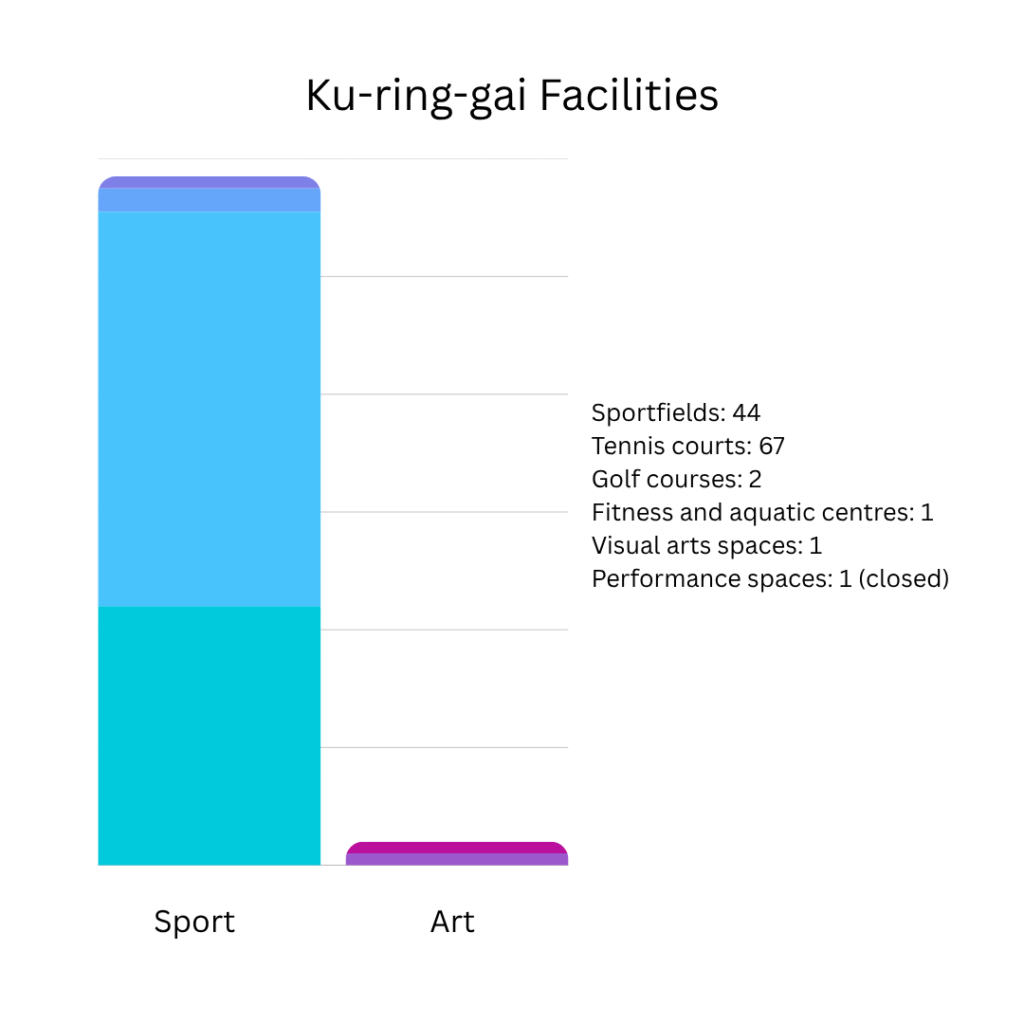 Ku-ring-gai has a vibrant, community-driven, grassroots arts and culture scene, but audiences and groups have been forced out of the area, including Marian Street Theatre for Young People, Killara Music Society (the largest music club in Sydney), Pymble Players, Ku-ring-gai Philharmonic, Sanskriti (School of Indian Performing Arts), and its many choirs, such as Hummingsong Choir and Challis Singers. Yes, we have private schools with arts facilities, but most community groups can’t hire these, and these schools also have extensive sports facilities. The private schools balance both sport and arts. We need both. We need better.